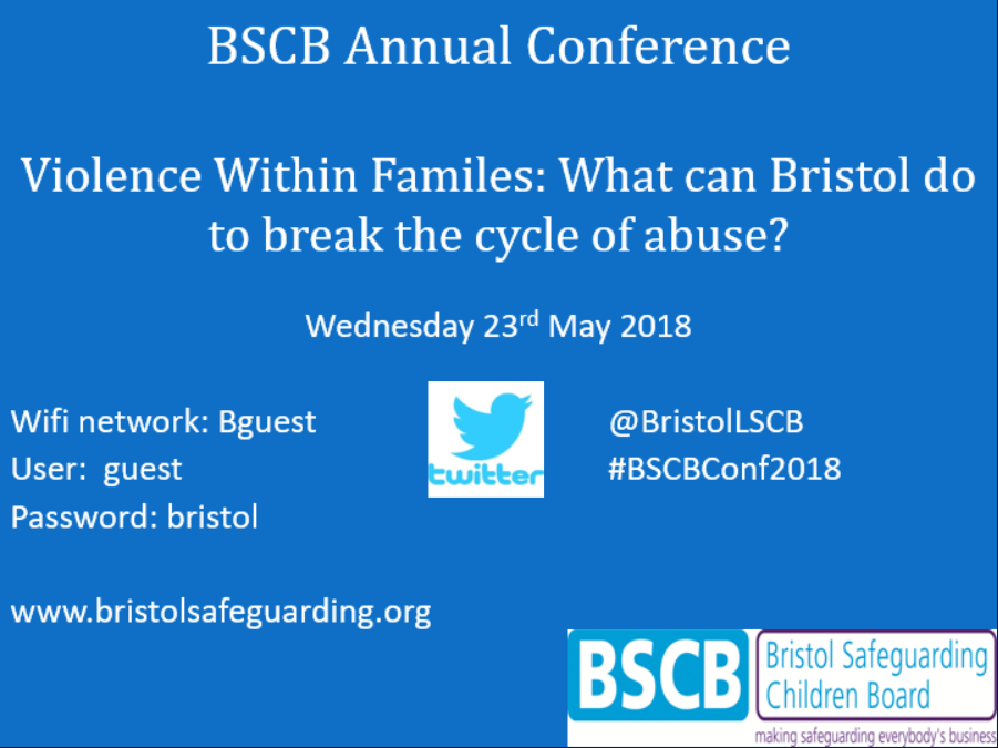 This Bristol Safeguarding Children Boards Annual Conference was titled Violence within Families: What can Bristol do to break the cycle of abuse? It took place on 23rd May 2018.